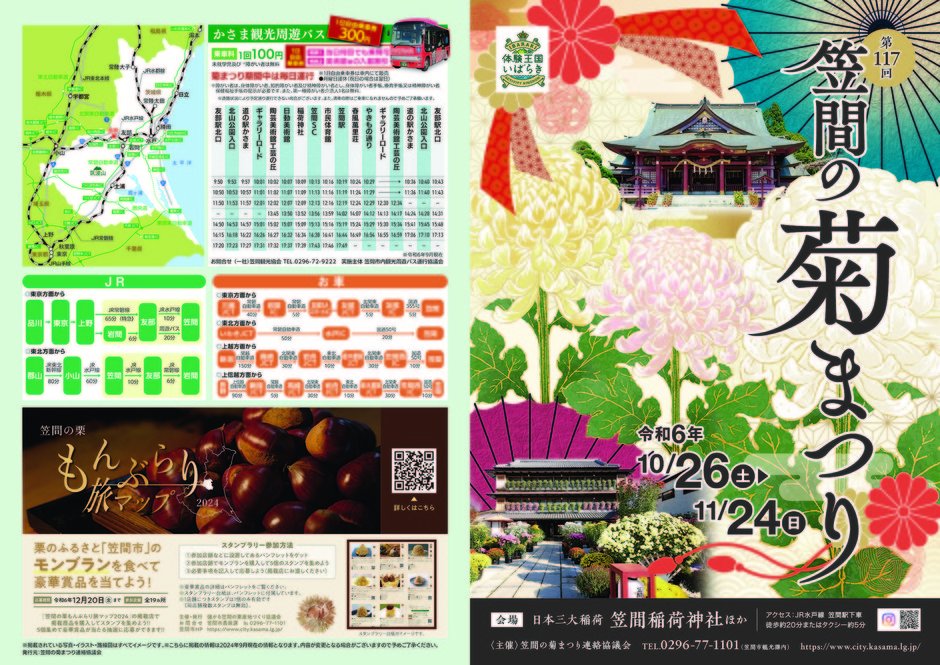 | お問い合わせ | 笠間の菊まつり連絡協議会(笠間市観光課内) TEL:0296-77-1101 |