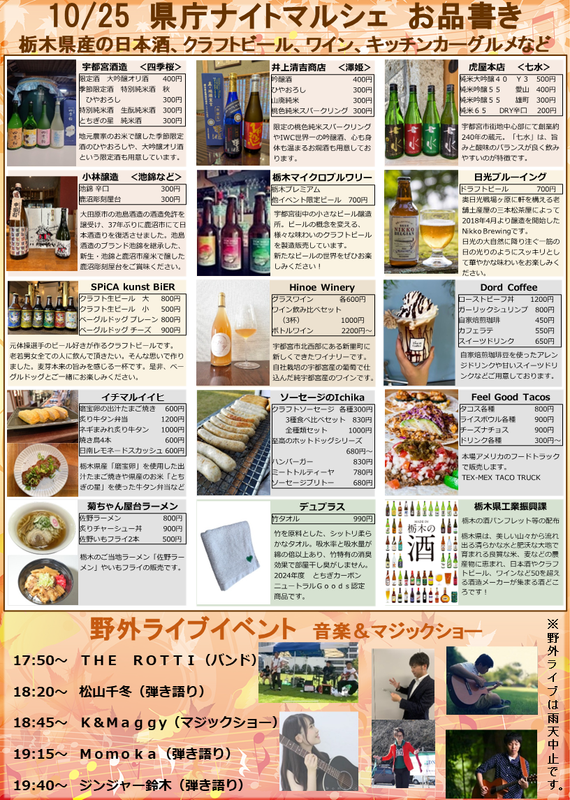 県庁ナイトマルシェ ~とちぎのお酒とグルメを味わう秋の夕べ~