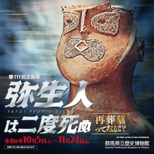今展覧会では、西日本と東日本の墓出土品を比較、再葬墓研究の契機となった岩櫃山鷹の巣岩陰遺跡(群馬県東吾妻町)出土の土器を里帰り展示、沖縄の洗骨葬の紹介などを行う。近年の研究を通じ、なぜ弥生人が二度死ぬのかを探る。