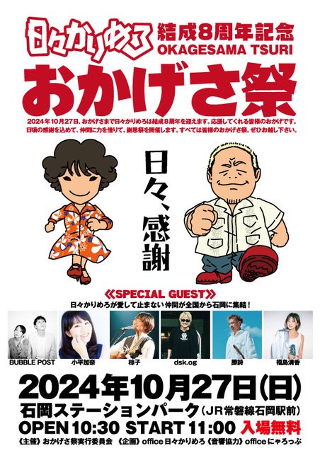 日々かりめろ結成8周年記念の音楽フェス。石岡ふるさと大使の高田梢枝(日々かりめろ)の地元で開催される記念すべき1回目の音楽祭。