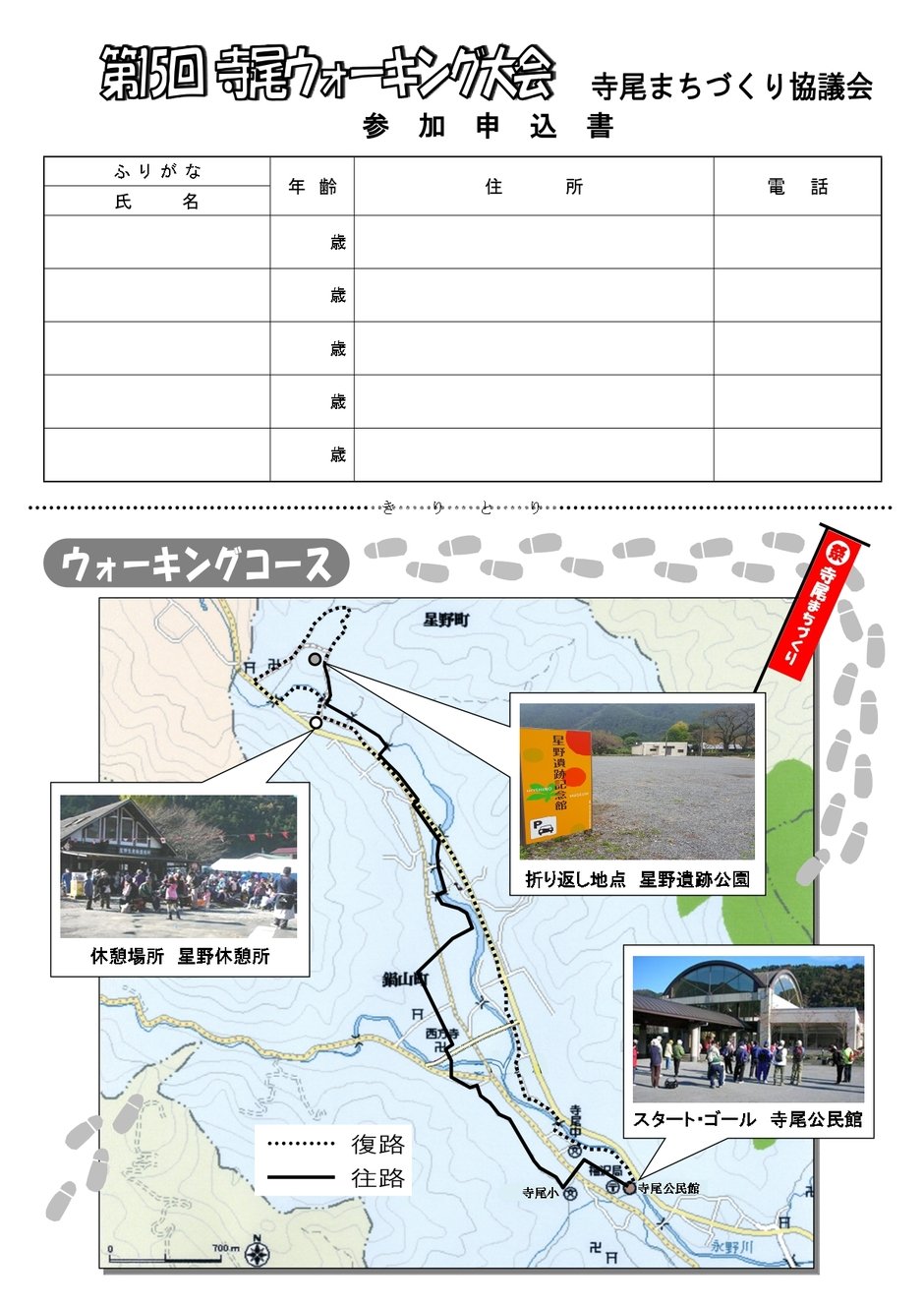 【コース】寺尾公民館(集合・スタート)~星野遺跡公園(折り返し)~寺尾公民館(ゴール)