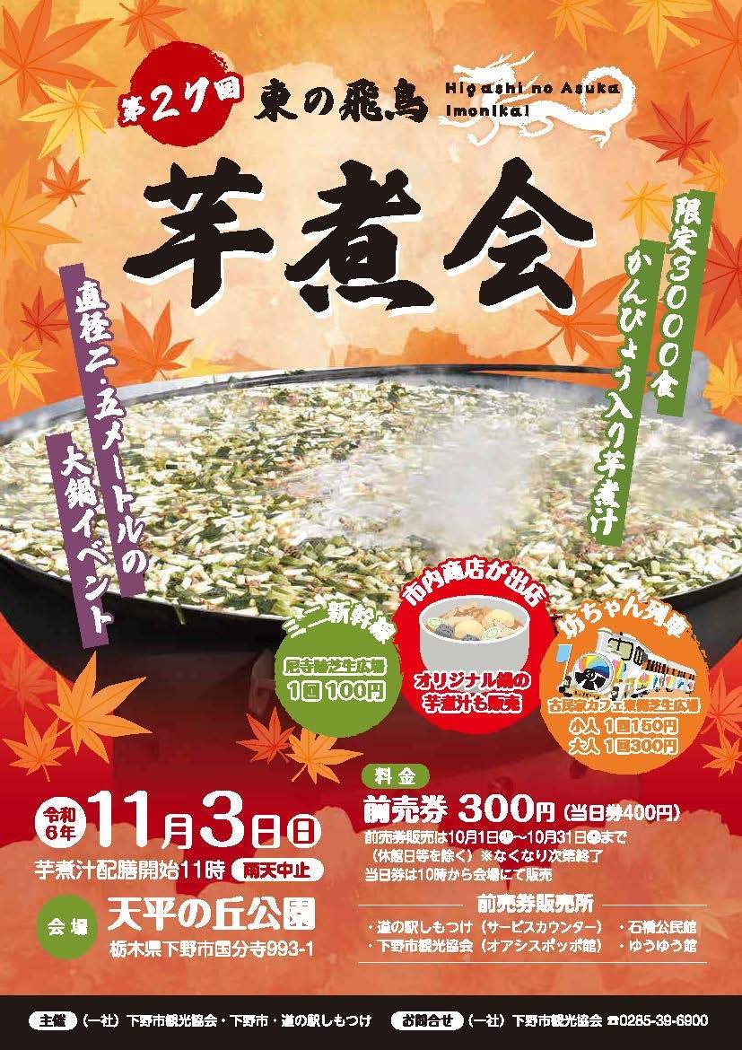 下野市では市の住みやすさをPRする、東の飛鳥プロジェクトを推進しています。そのことから芋煮会を「東の飛鳥芋煮会」と改め、5年ぶりに実施をいたします。