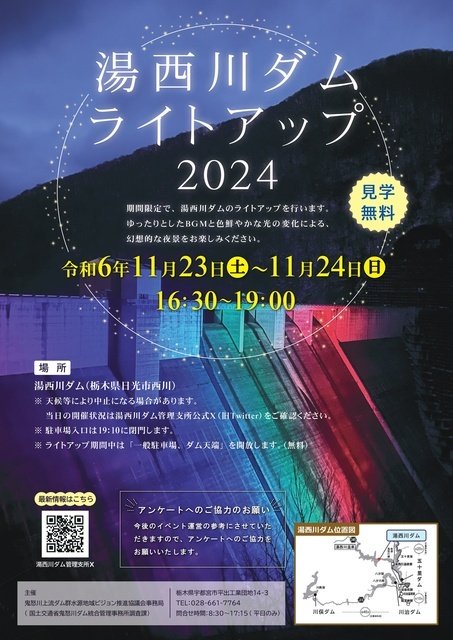 天候等により中止になる場合あり。当日の開催状況は湯西川ダム管理支所公式Xを確認。