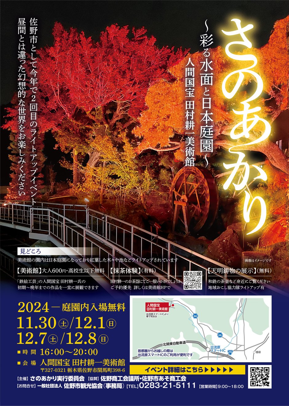 | お問い合わせ | 【主催】さのあかり実行委員会 【お問い合わせ】一般社団法人 佐野市観光協会(事務局) 【TEL】0283-21-5111 【営業時間】9:00~18:00 |