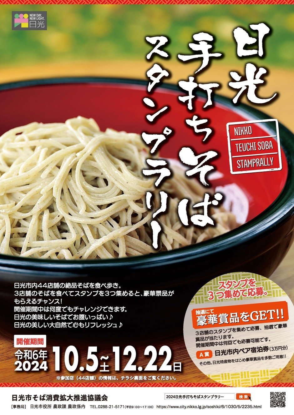 2024日光手打ちそばスランプラリーを令和6年10月5日(土曜日)~12月22日(日曜日)の79日間開催します。