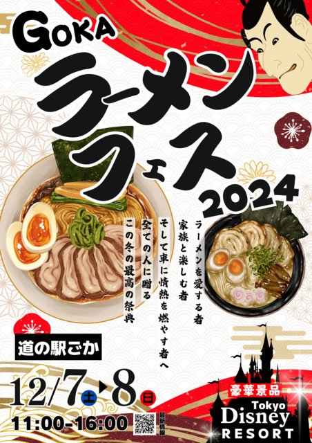 12月7日(土)・8日(日)、ごかラーメンフェス2024が開催される。懐かし車フェスや縁日イベントも同時開催し、大人も子供大満足。さらにシン・いばらきメシ総選挙2024グランプリ受賞作「シン・茨城あげそば」も通常営業。熱々のラーメンと昭和・平成の名車が彩る冬の最高の祭典。豪華景品が当たる縁日やイベント満載。この冬、心もお腹も満たされる特別な2日間を家族で楽しもう。