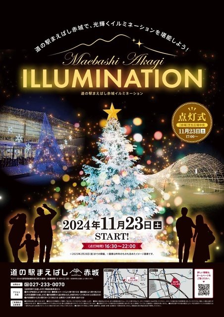 赤城山麓の広大な敷地に、ショップやアクティビティが楽しめる「道の駅まえばし赤城」で光り輝くイルミネーションが点灯する。