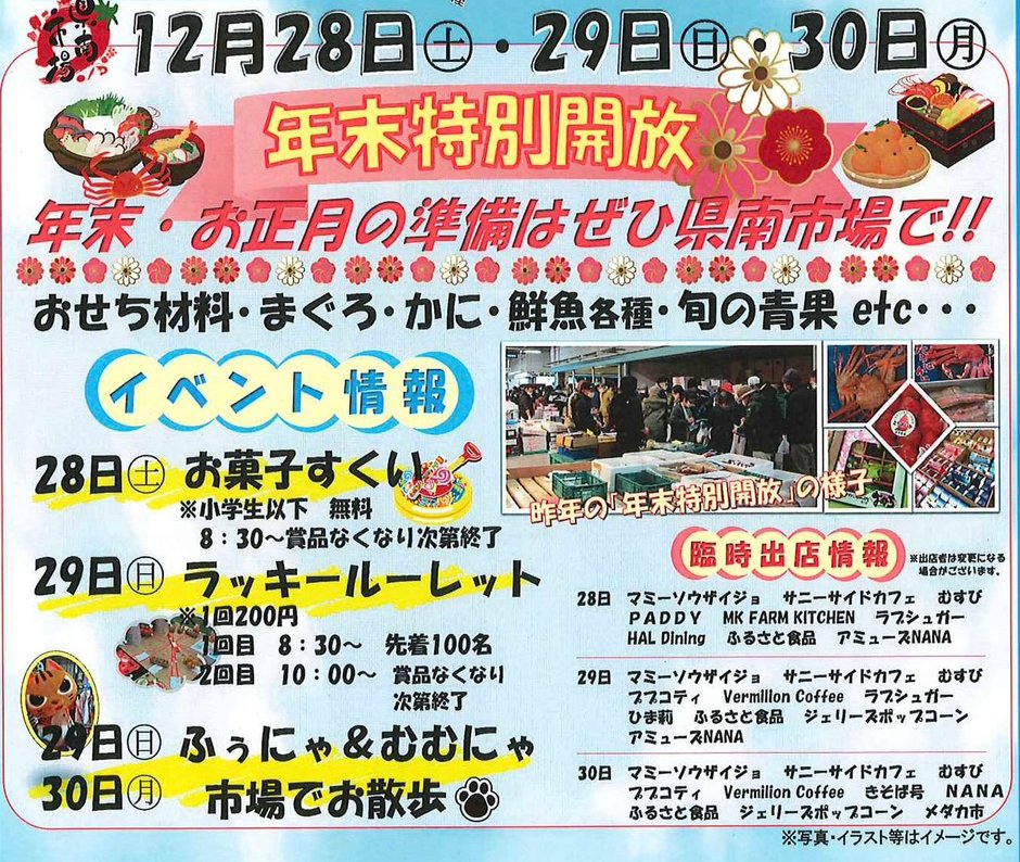 年末・正月用品の買い出しは県南市場で!!