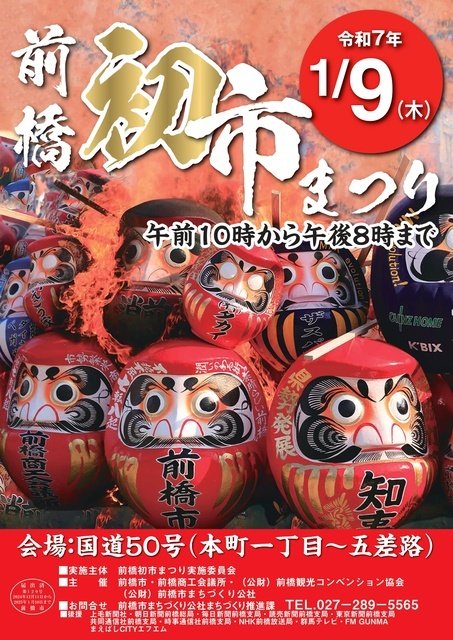 約400年の歴史を誇り、前橋市を代表する伝統文化である前橋初市まつりを後世に継承するとともに、まつりを通じて地域の活性化を図ることで、産業の振興に寄与することを目的として開催。「古だるまお焚き上げ」や「渡御の儀」、福だるま等の縁起物や食べ物の露店出店が行われる。交通規制は9時~22時。無料おまつりバスの運行・臨時タクシー乗場の設置中止。交通規制により路線バス及びマイバスの運行経路・時間が一部変更。