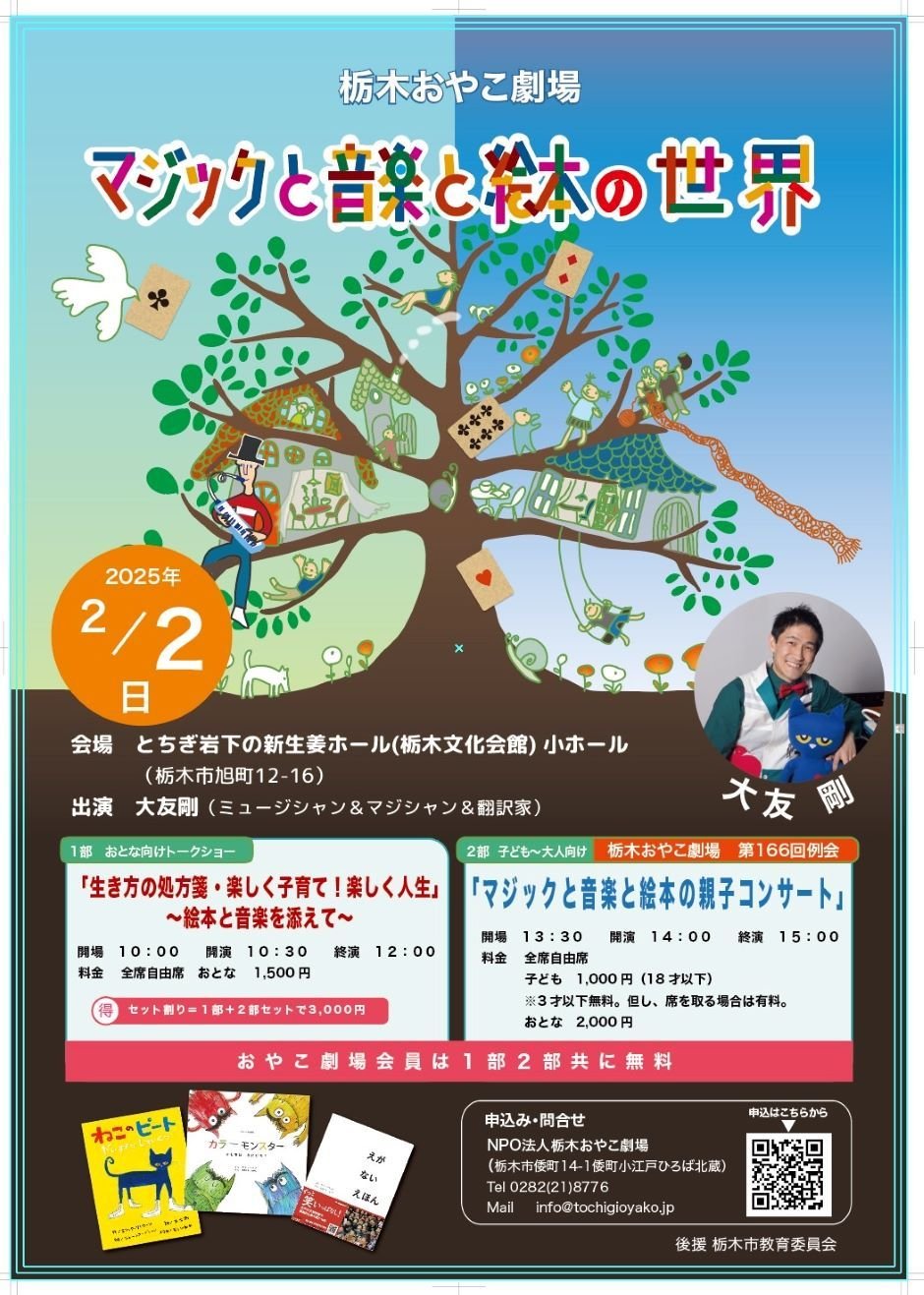 1部(午前)「おとな向けトークショー」と、2部(午後)「マジックと音楽と絵本の親子コンサート」の2本立てです。