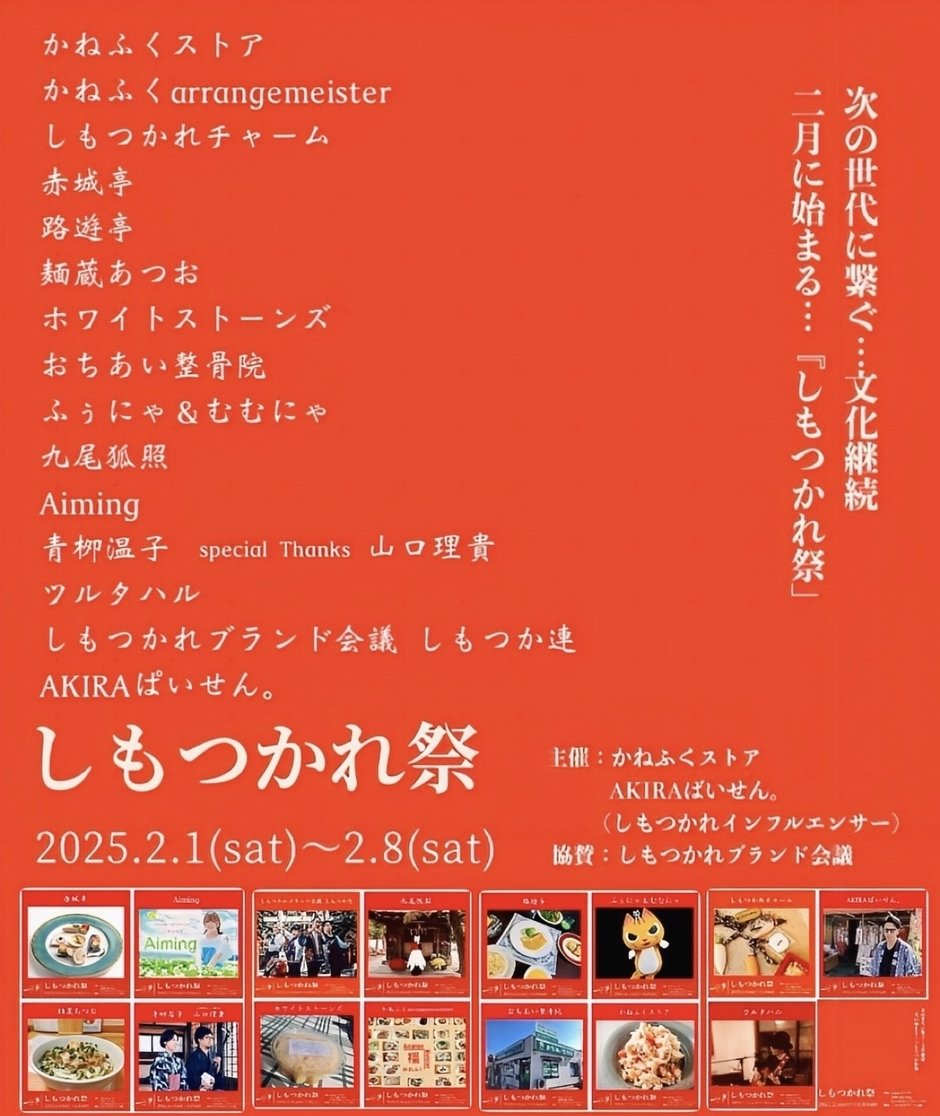 | お問い合わせ | 主催:かねふくストア AKIRAぱいせん。 ✲お問い合わせはInstagramの[しもつかれ祭]アカウントにて対応致します。 |