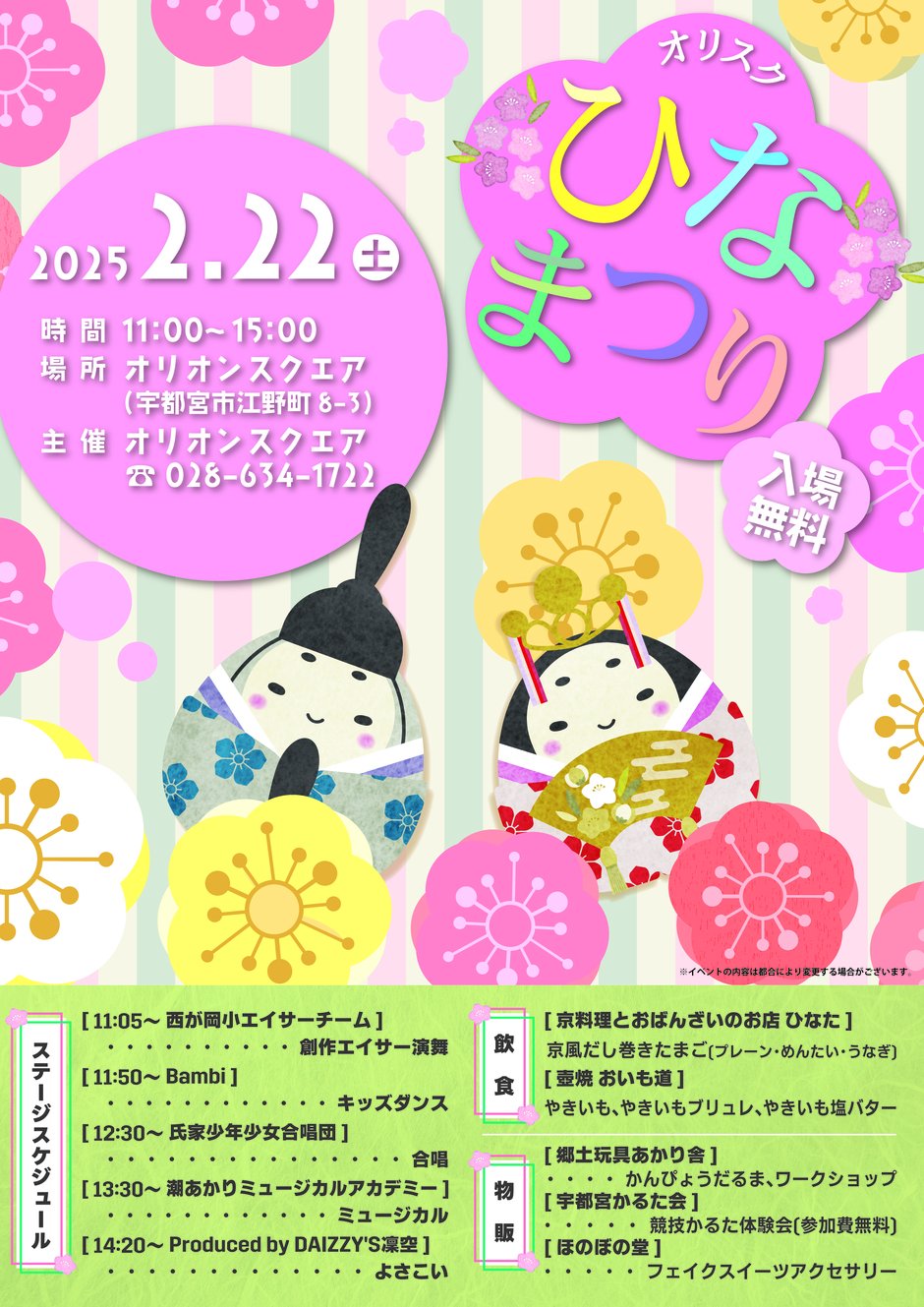 詳細:ひなまつりをモチーフにしたイベント「オリスクひなまつり」を実施します。