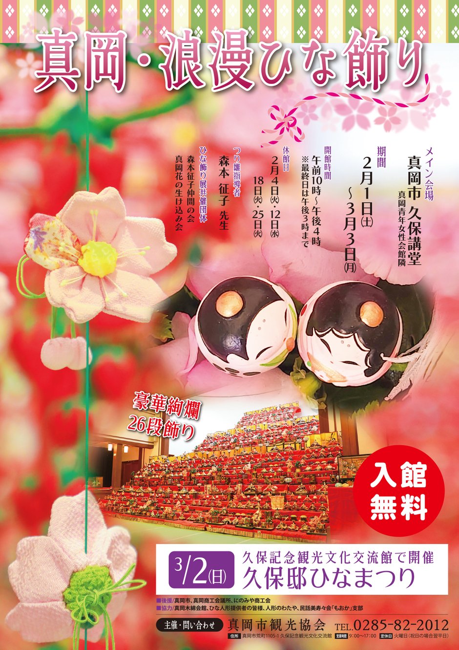 | お問い合わせ | 問合せ:真岡市観光協会 TEL:0285-82-2012 ※受付時間:9:00~17:00、火曜日・2月12日(水)を除く |
