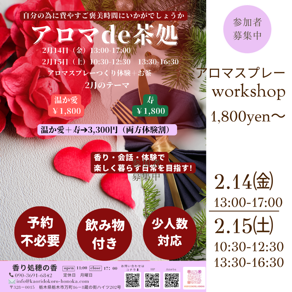 2025年2月開催アロマde茶処、心が温かくなるような香りをお届けします