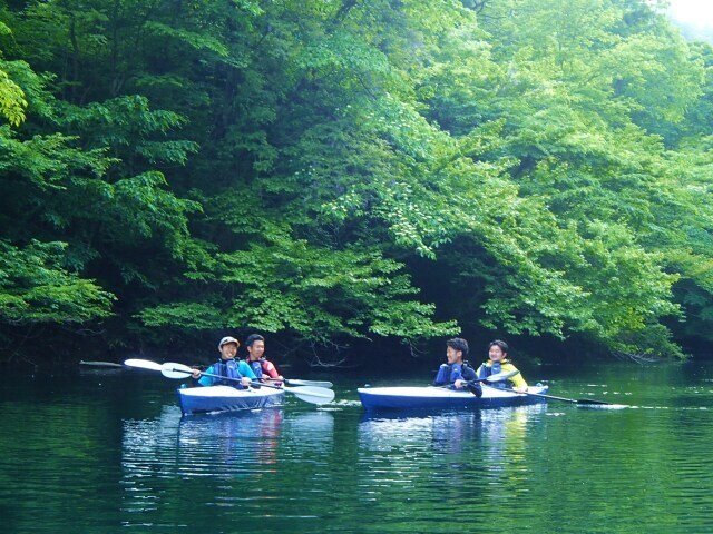 春休み〜新緑・四万湖で「季節のカヌーカヤック体験」 アウトドア 自然体験