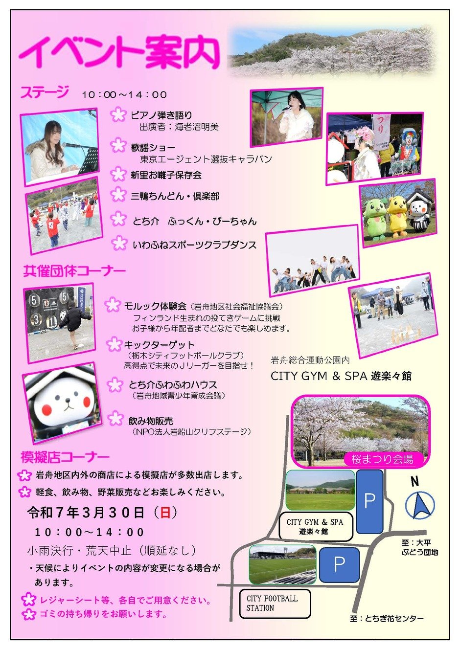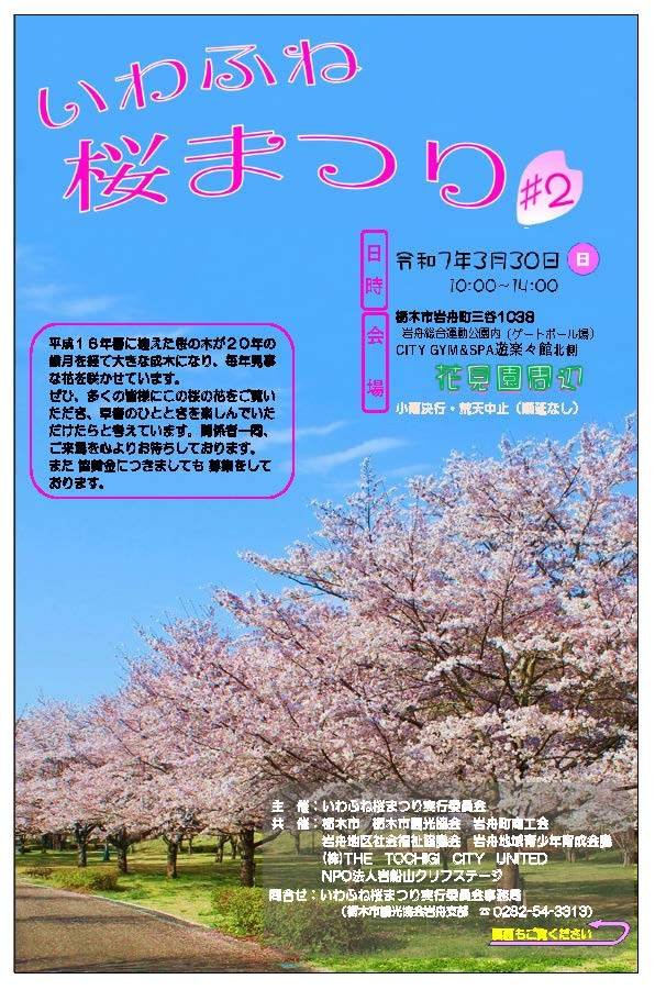 | お問い合わせ | いわふね桜まつり実行委員会事務局(栃木市観光協会岩舟支部☎0282-54-3313) |