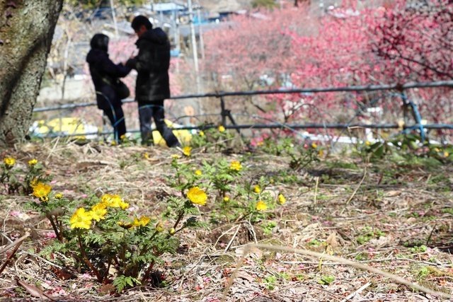妙義山の麓にある休耕地を利用した里山公園。福寿草と紅梅の競演は、早春の訪れを楽しませてくれる。写真撮影スポットとしても人気があり。3月第1週目の土曜日は、福寿草まつりを開催、きのこ汁の無料配布(先着300名)を行う。山の斜面を利用しているので、歩きやすい靴で参加しよう。