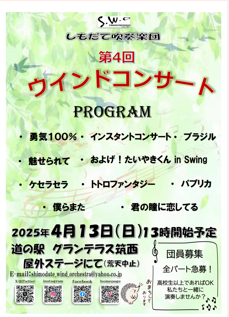 | お問い合わせ | しもだて吹奏楽団 shimodate_wind_orchestra@yahoo.co.jp |