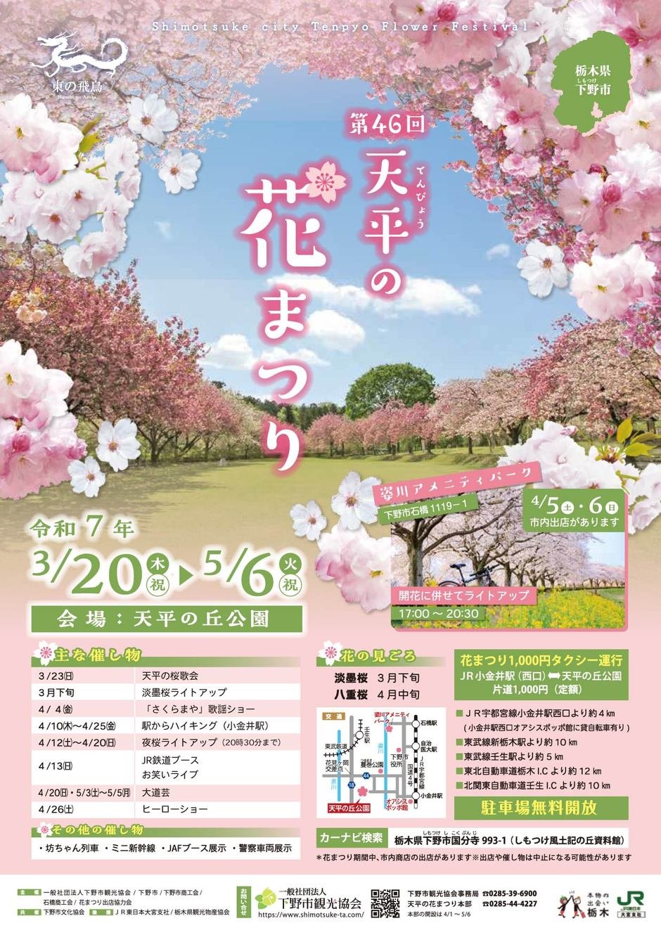 令和7年(2025)3月20日(木・祝)から5月6日(火・祝)まで天平の丘公園にて、第46回天平の花まつりを開催いたします。