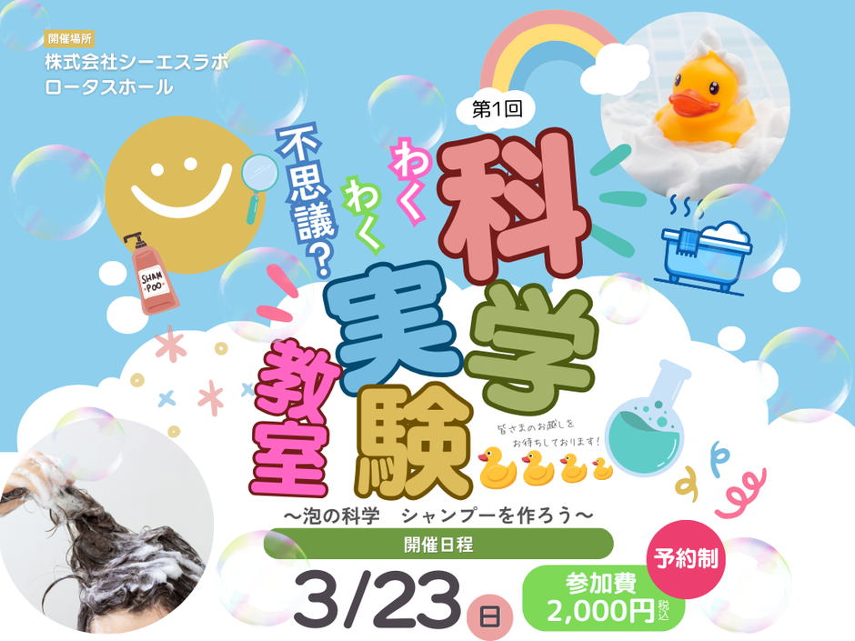 今回のテーマは『泡』です。シャンプーづくりを体験しながら泡の不思議をみんなで学びましょう!