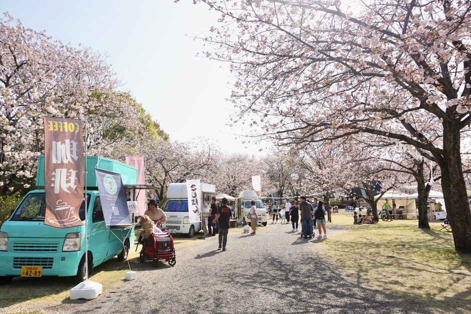 土日にはキッチンカーが出展し、花見をしながらグルメを堪能することができるほか、地元吹奏楽団等によるミニコンサートを予定しています。