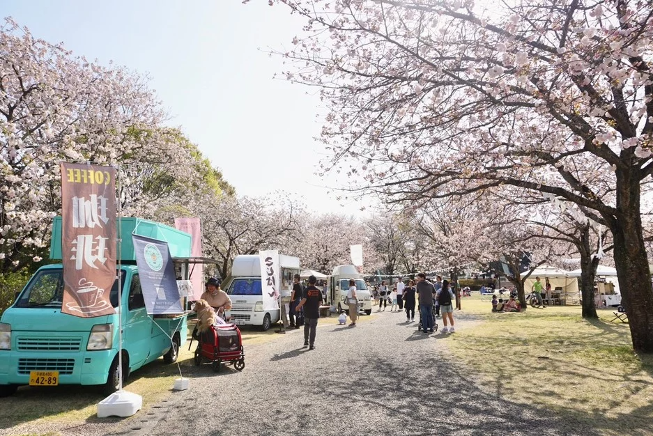 公園内の八重桜が満開を迎える4月12日13日の2日間は、「レディライクマルシェ」が開催れ、県内外から多数のハンドメイド作品やキッチンカーが集います。