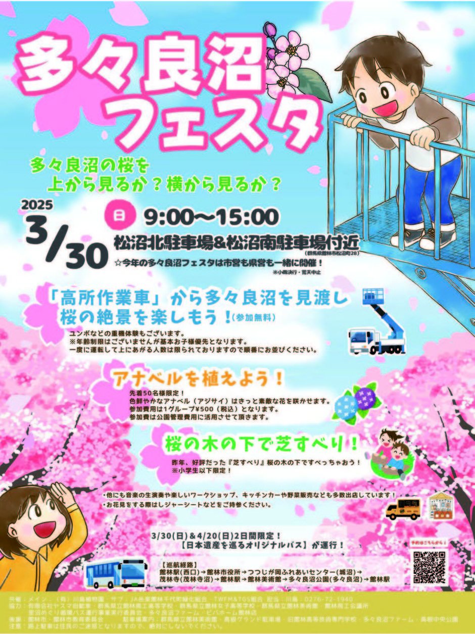 ・「高所作業車」から多々良沼を見渡し桜の絶景を楽しもう!(参加無料)