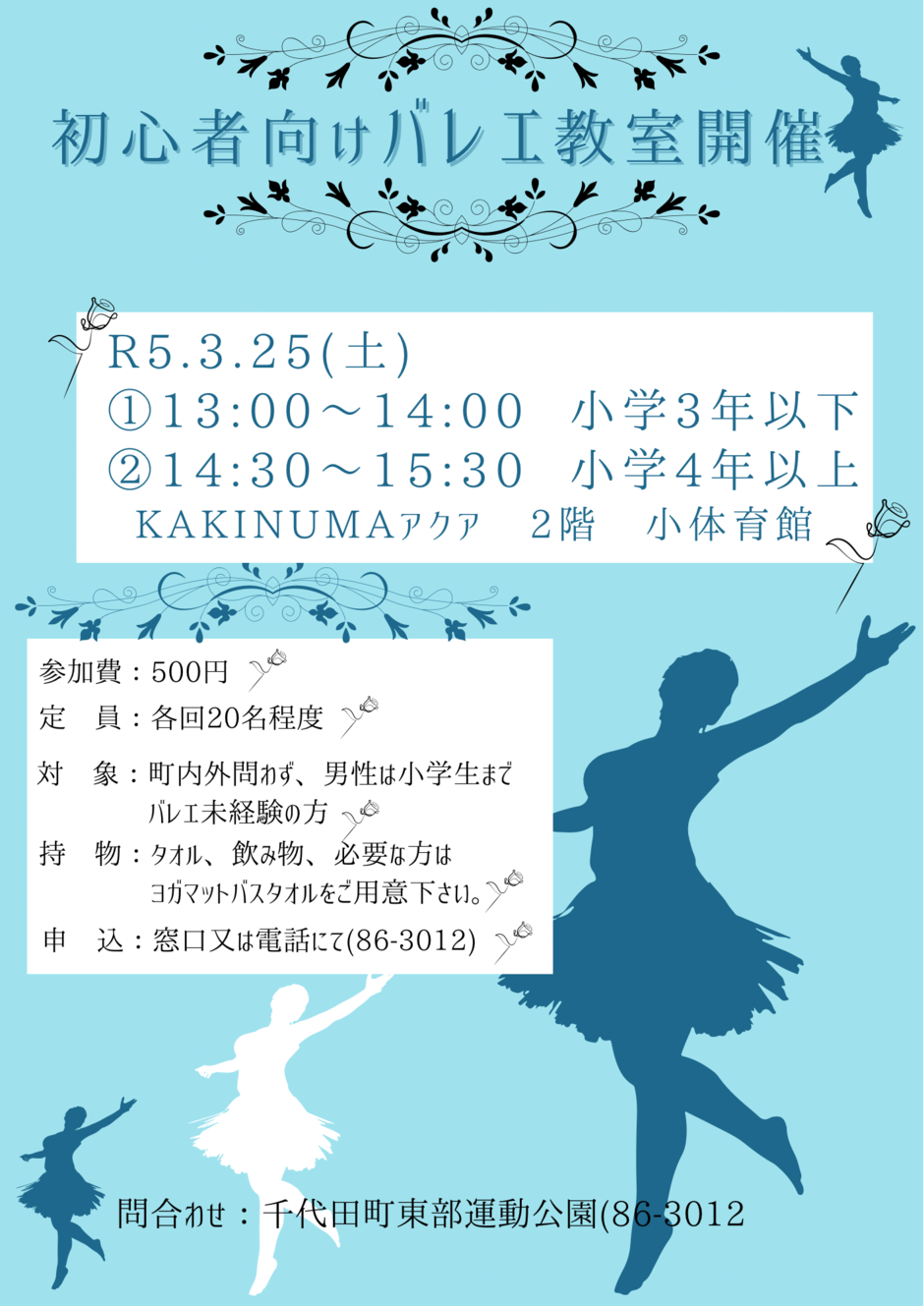 対象:町内外問わず、男性は小学生まで。女性年齢制限なし、バレエ未経験者