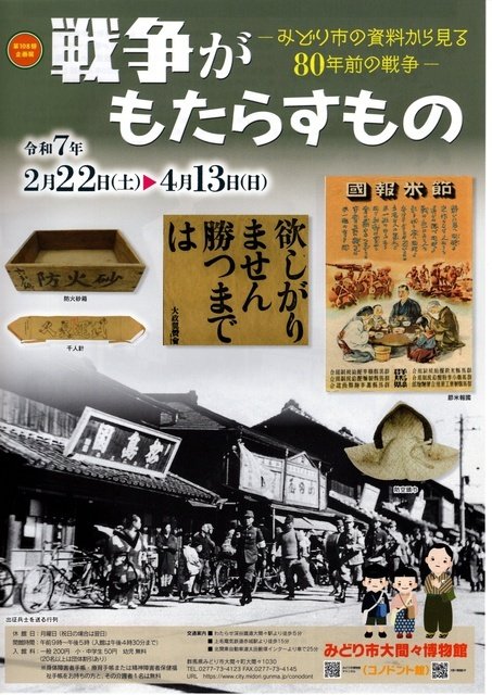 第108回企画展「戦争がもたらすもの―みどり市の資料から見る80年前の戦争―」