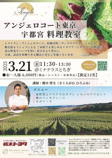 アンジェロコート東京 宇都宮「料理教室」※先着申込制