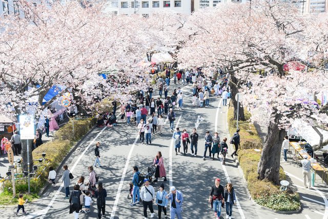 日立市内のかみね公園とともに、日本の「さくら名所100選」に認定されている平和通り。およそ120本のソメイヨシノが約1kmにわたって咲き誇る。