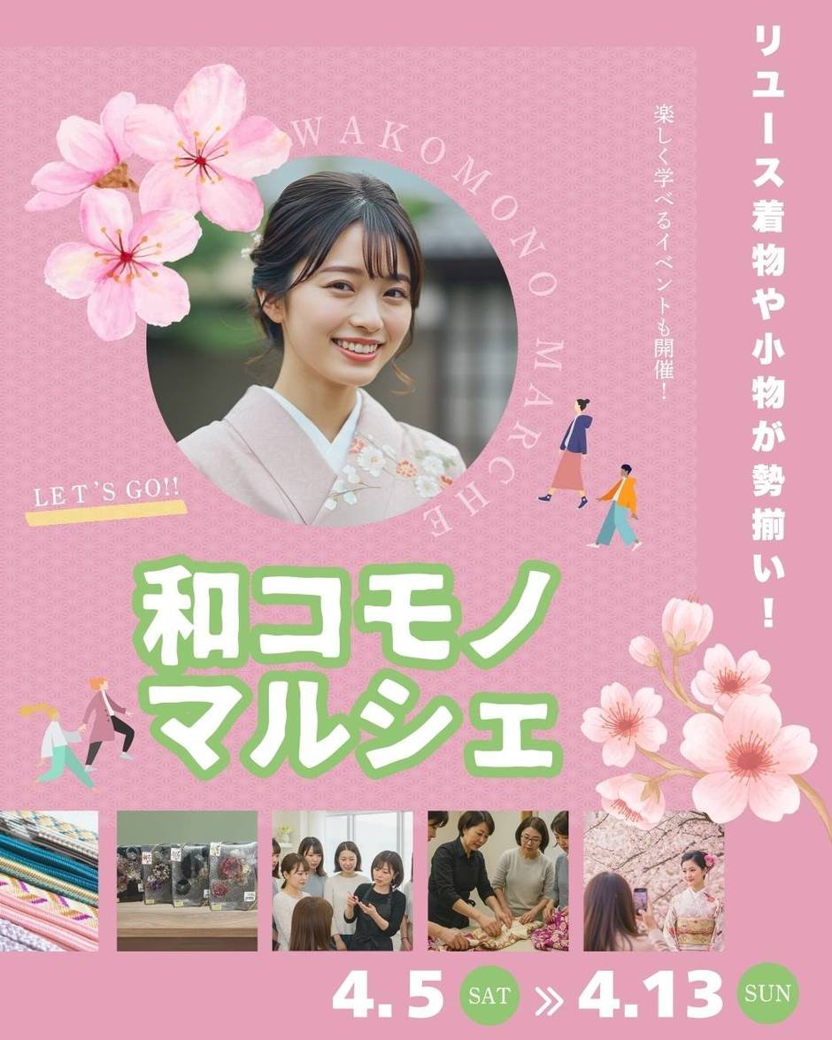 リユース着物や和装小物が一堂に揃う「和コモノマルシェ」を、KIMONOしゃなり(栃木・宇都宮)にて開催。着物初心者や成人式を控える母娘向けのイベントも、期間中毎日2回実施します。