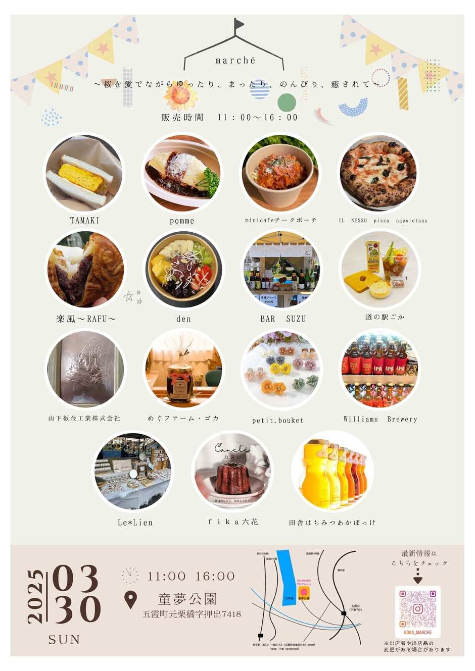 3月30日(日)桜の名所「権現堂桜堤」に隣接する童夢公園で「OHANAMIごかマルシェ」を開催します。