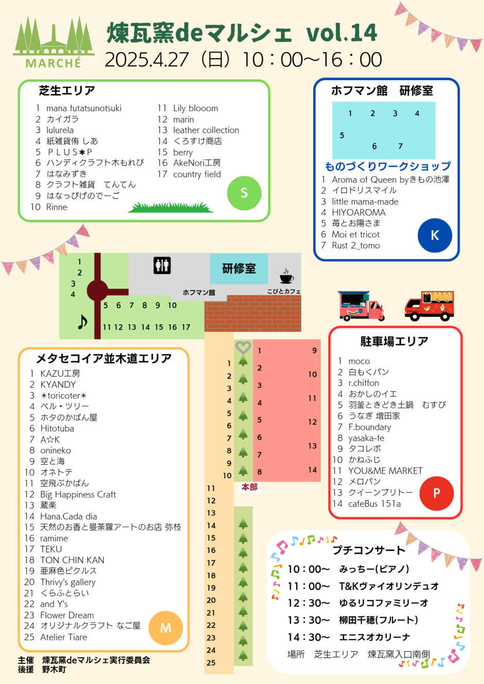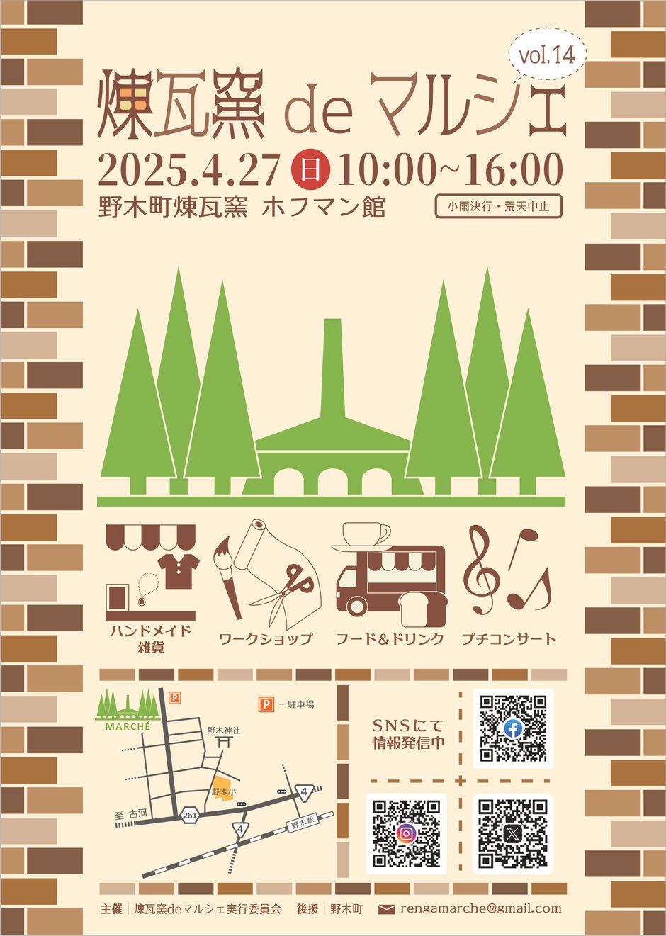 | お問い合わせ | 煉瓦窯deマルシェ実行委員会 rengamarche@gmail.com |