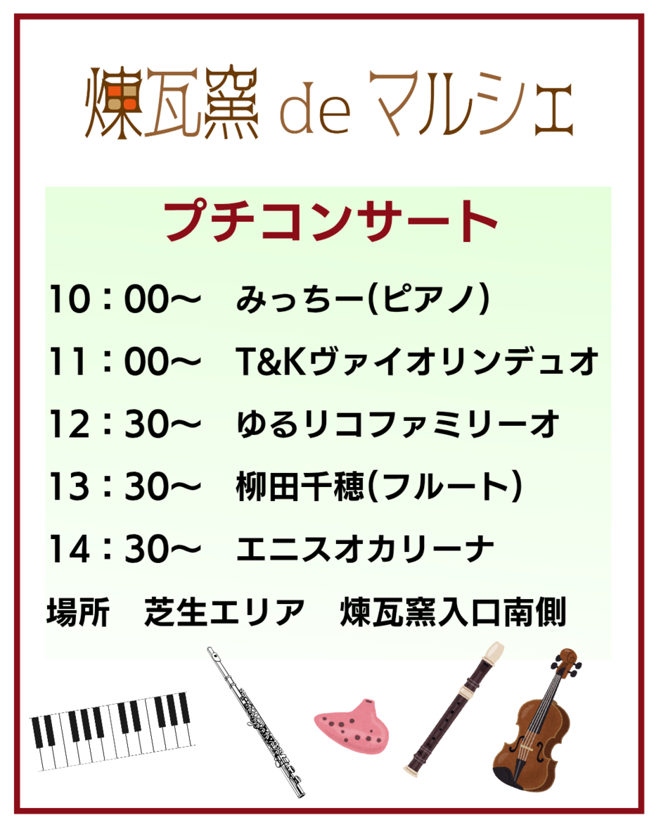 煉瓦窯の入口付近では町内及び近郊で演奏活動をされている方にお願いして、プチコンサートを開催します。