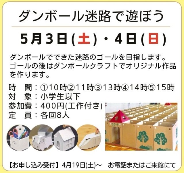 | 参加費 | 400円(ダンボールクラフト1個付き) |