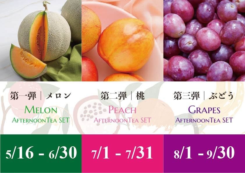 メロン・ピーチ・ぶどうの3種類のアフタヌーンティーをお楽しみいただき、スタンプを集めたお客様には、次回ご利用いただける「半額優待券」をプレゼント。