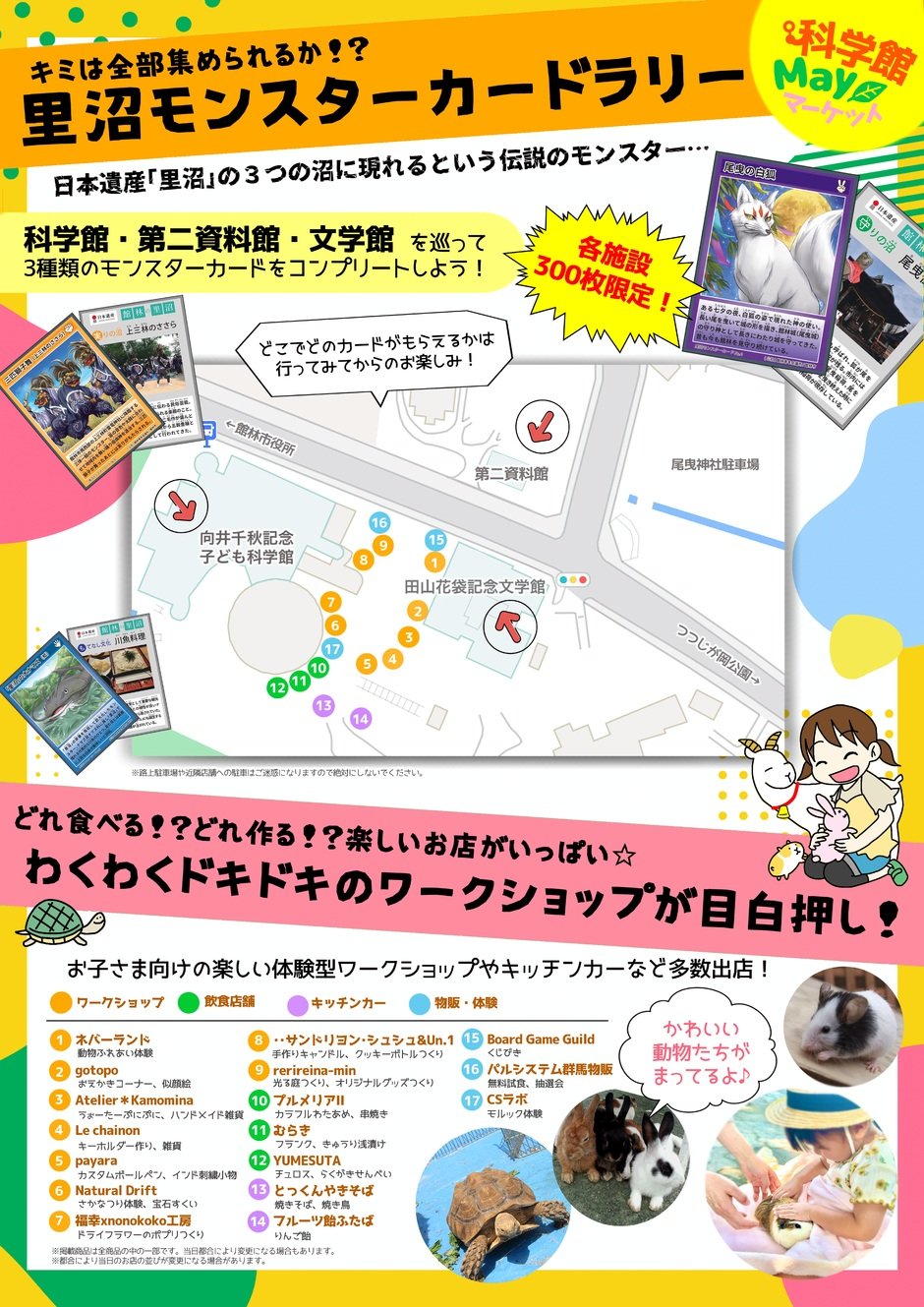 (3)里沼モンスターカードラリー:先着300名限定!科学館・第二資料館・文学館を巡って新作3種類のカードをゲットしよう!