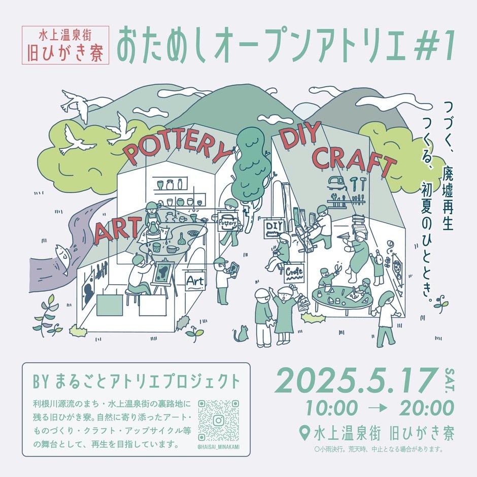 株式会社オープンハウスグループ(以下「当社」)は、みなかみ町、群馬銀行、東京大学大学院工学系研究科と2021年9月に締結した「産官学金包括連携協定」(以下「本協定」)に基づき進めております「水上温泉街再生プロジェクト」の一環として再活用を実施している、閉館した温泉旅館「一葉亭」の従業員寮「旧ひがき寮」にて、2025年5月17日(土)に開かれる「おためしオープンアトリエ#1」に協力いたしますことを、お知らせいたします。