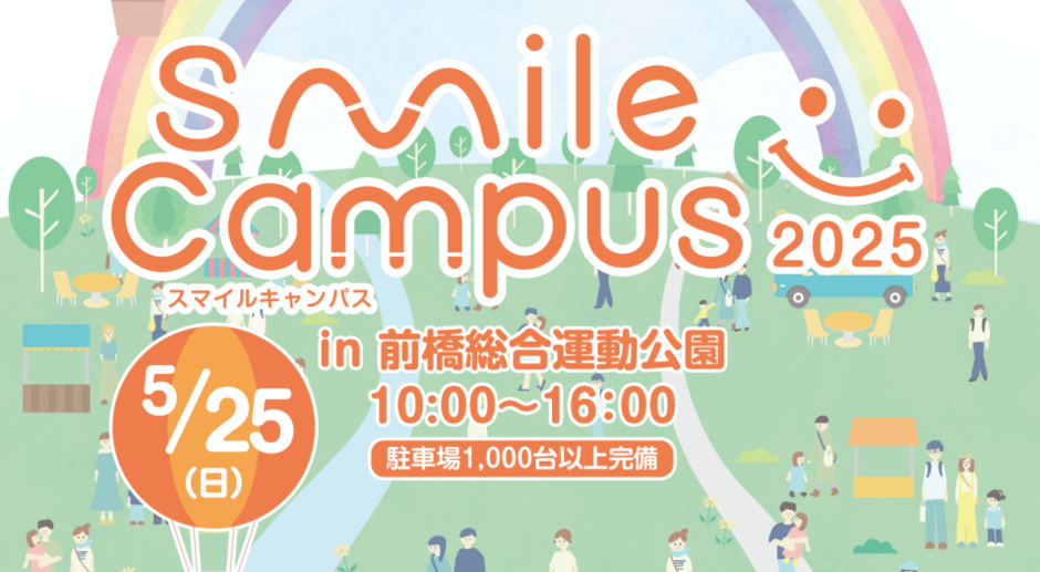「スマイルキャンパス」は、群馬県前橋市で実施され、毎年数千人もの来場者を集める前橋最大級のイベントで今回は7回目の開催となります。今年のテーマは「みんなでソーシャルアクション」を合言葉に学生、大人、団体などの地域住民が一堂に会し、参加者一人ひとりが地域課題を解決するためにできることを宣言。”笑顔が集まる街”を目指してさまざまな方が主体的に動き出すきっかけづくりとなる参加型のイベントです。特に今年は教育分野にも力を入れており、参加することが子どもたちの成長に繋がる内容となっております。また、群馬県・群馬県教育委員会・前橋市・前橋市教育委員会・伊勢崎市・伊勢崎教育委員会の後援を頂いた上での開催となります。