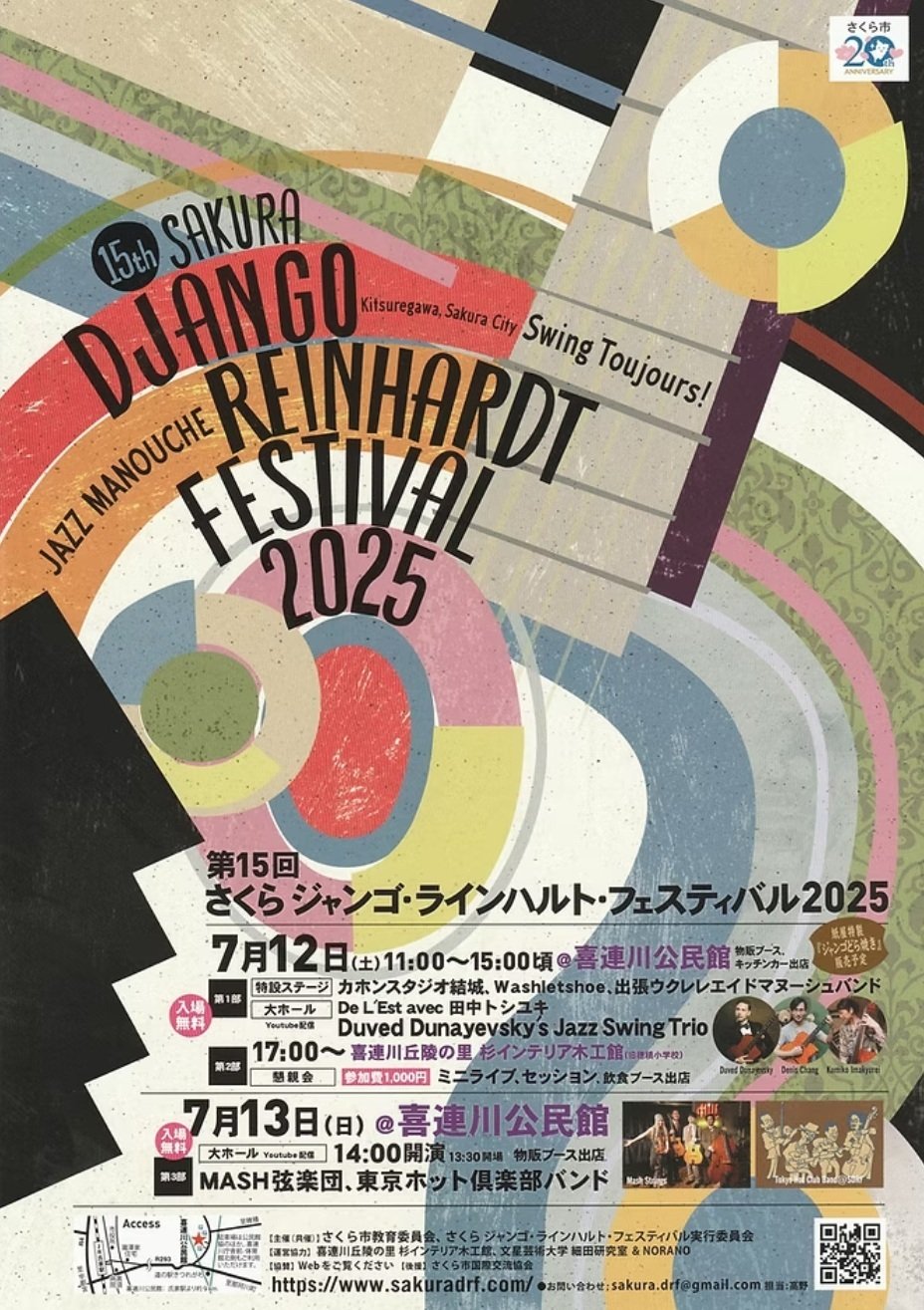 さくらジャンゴ・ラインハルト・フェスティバルは、本年で第15回を迎えます。また、栃木県さくら市は、旧氏家町・旧喜連川町の合併から20周年を迎えます。