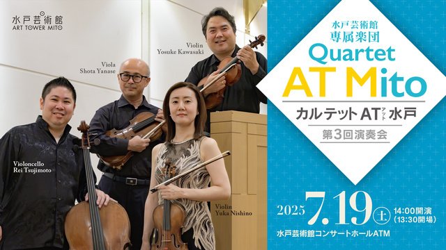 水戸芸術館専属楽団「カルテット AT 水戸」の第3回演奏会。小澤征爾が絶大な信頼を寄せた川崎洋介を中心に、国内外で活躍する西野ゆか、柳瀬省太、辻本玲が集う。演奏曲は、ハイドンの弦楽四重奏曲第38番 冗談、ベートーヴェンの創作中期の“総まとめ”と称される名作、弦楽四重奏曲第7番 ラズモフスキー 第1番、そして、ロシアの現代作曲家レーラ・アウエルバッハの弦楽四重奏曲第3番 セテラ・デサント。