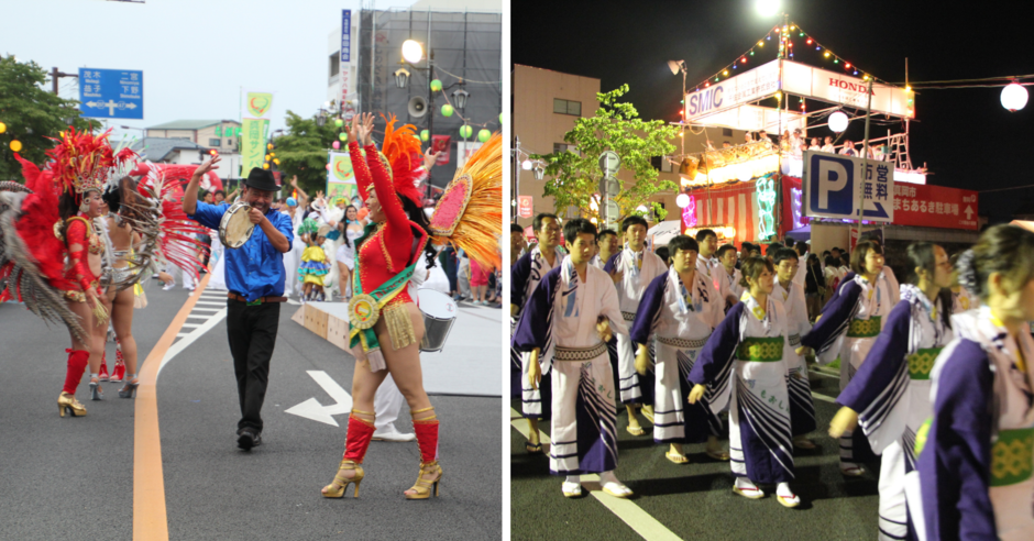 もおか木綿踊りは、真岡市がかつて江戸時代に上質な木綿織物「真岡木綿」の産地として栄えた歴史にちなんで名付けられました。イベントは、さまざまなダンスチームがヒップホップダンスやフラダンスなど、幅広いジャンルの踊りが楽しめるダンスフェスティバル、メインイベントとなる伝統的な踊りの流し踊り、情熱的なサンバパレードが祭りの熱気を最高潮に高めるサンバパレードの3部構成で行われます。