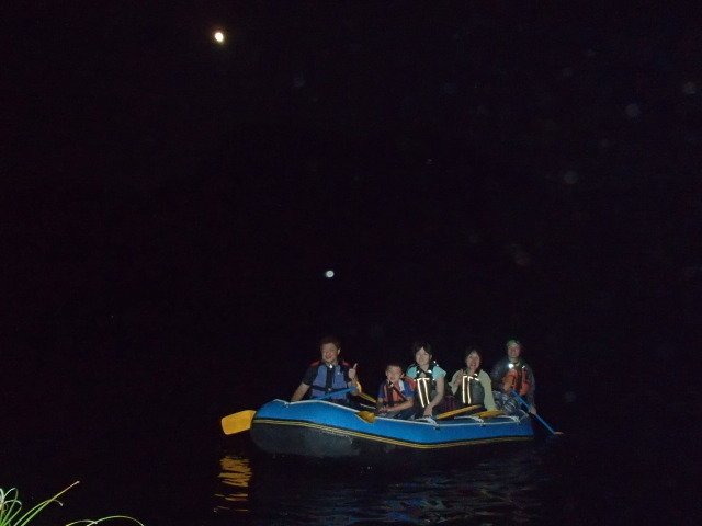 真っ暗闇の夜の静寂、ほのかに光る蛍たち。水面に飛び交う蛍のさまに皆思わず息を飲む。年に一度の貴重な体験を家族や仲間と味わおう。安定感抜群のツインカヌー(舟を横連結)で夏夜満喫! ガイド同乗。癒し系遊覧ツアー。急流用ラフティングボートでご案内の場合もあり。期間限定の特別開催!軽井沢近くで気軽に楽しめる外遊び自然体験レジャー。4歳からOK! 少人数ツアー。要事前予約。