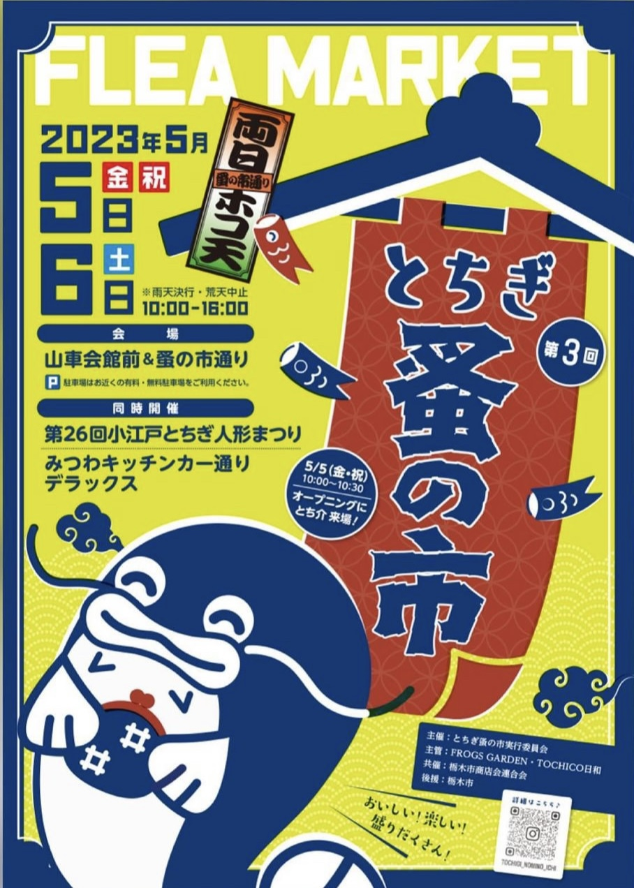 | お問い合わせ | 主催:とちぎ蚤の市実行委員会 主管:FROGS GARDEN ・TOCHICO日和 共催:栃木市商店会連合会 後援:栃木市 |