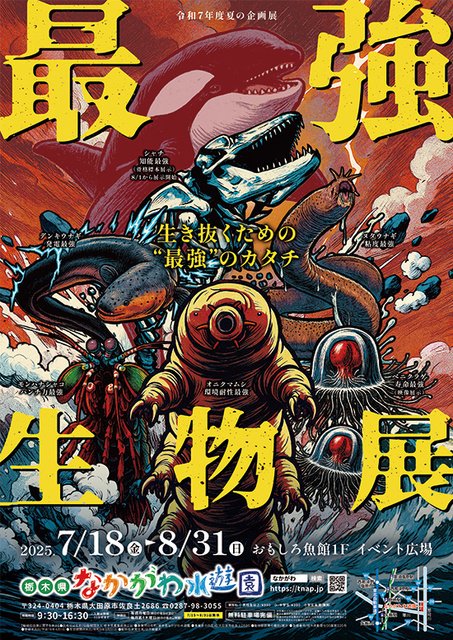 水辺の最強生物をテーマにした夏の企画展。発電最強のデンキウナギやパンチ力最強のモンハナシャコ、環境耐性最強のオニクマムシなど10種約35点が展示される。