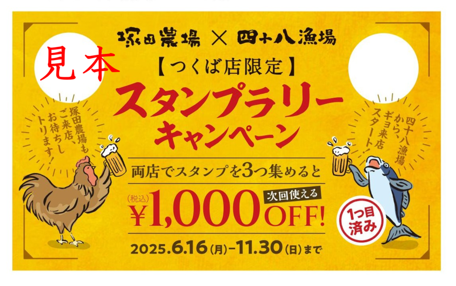 つくばを満喫、塚田農場&四十八漁場限定スタンプラリー