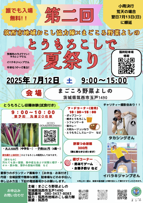 時間:9:00〜15:00(小雨決行・荒天時は翌日に順延)
