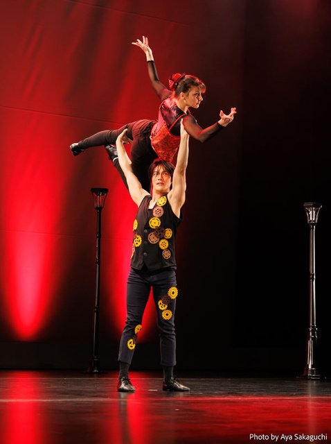 ウクライナ人女性”オーリャ”と日本人男性”真志”によるアクロバットデュオ。二人の本格的なアクロバットパフォーマンスを楽しもう!パフォーマンス後は、ジャグリング体験教室も開催!