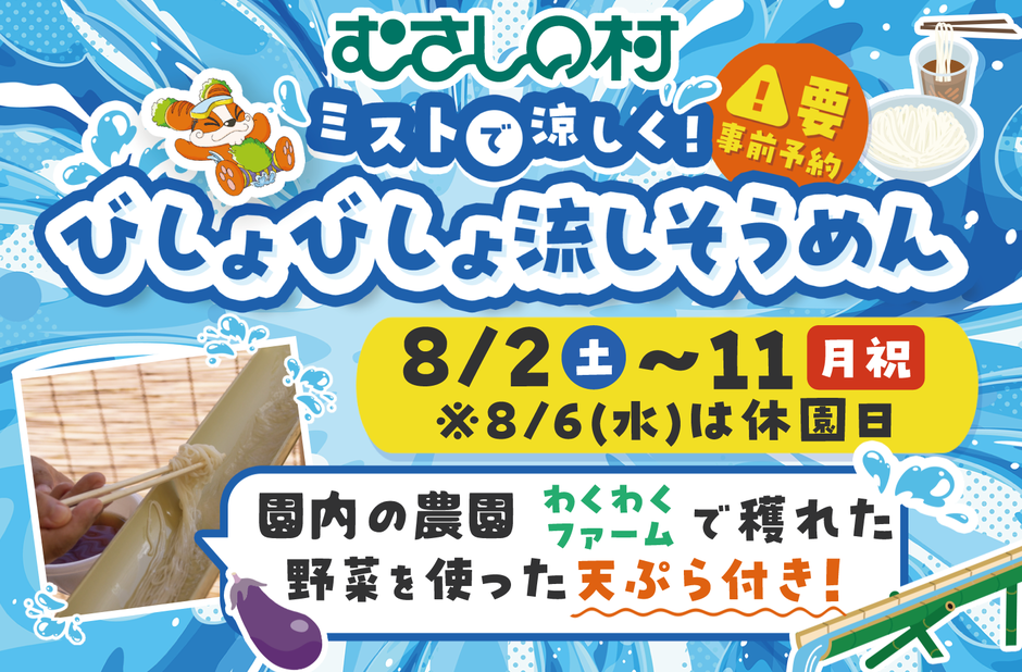 緑の中のファミリーランド むさしの村『ミストで涼しく!びしょびしょ流しそうめん』※要事前予約